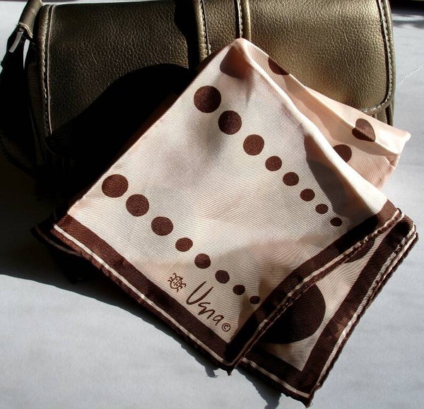 Vera Neumann Light Brown With Dark Brown Polka Dot Scarf With Ladybug
