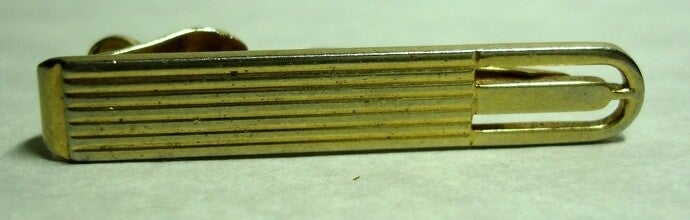 Vintage Men's Goldtone Swank Tie Clasp In A ribbed Art Deco Design