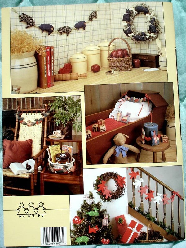craft pattern, Strings and Things, Leisure Arts Leaflet 1057, garlands, wreaths, baskets, centerpieces, designs by Anne Van Wagner Young, basic doll pattern, prairie doll, angel doll, duck, bunny, heart & cat & bear & pig & scottie dog, Two Artisan Sisters,