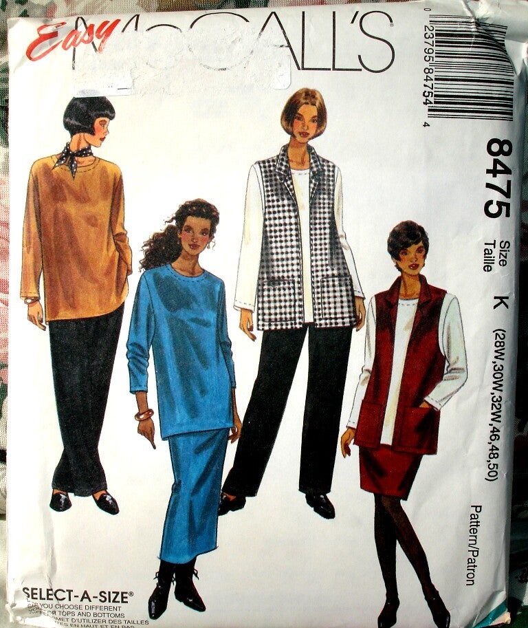 McCall's 8475 Women's Vest, Top, Pull-On Pants And Skirt In Two Lengths Size K
