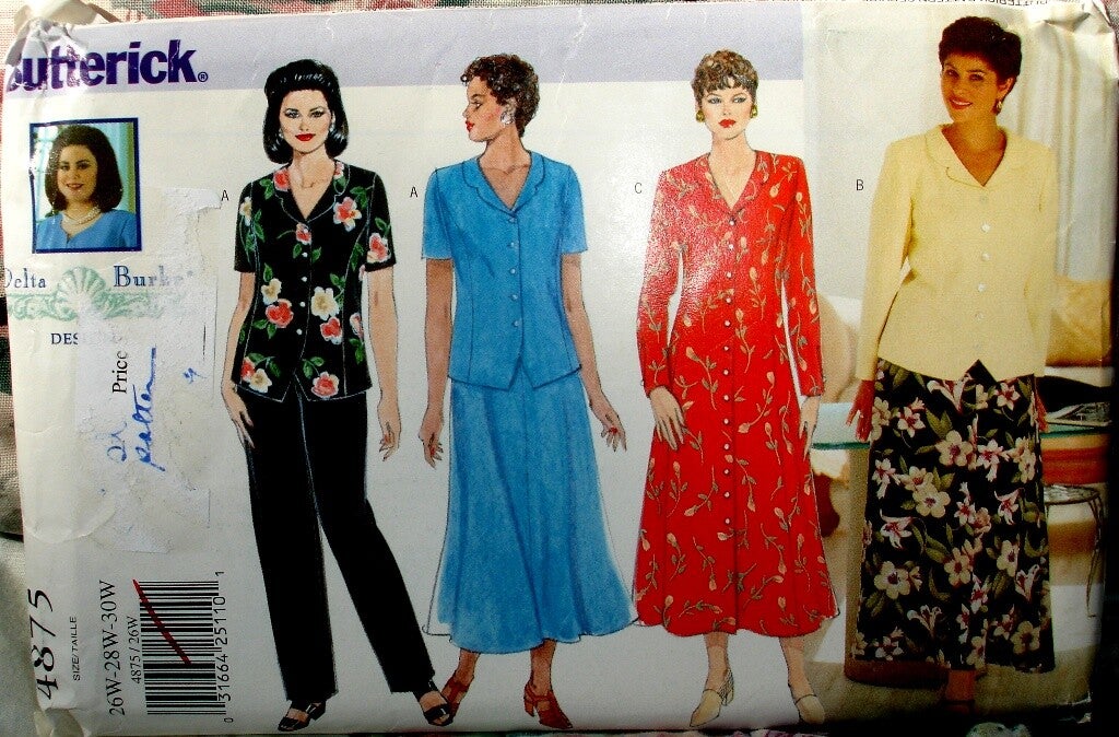 This Butterick 4875 Semi Fitted Dress Top Skirt And Pants pattern will ship USPS First Class with tracking.