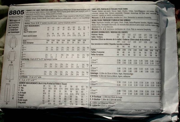 Simplicity 8805 Womens Top Skirt Pants And Scarf Pattern Size FF(18W-24W) - Item#VP637-TAS